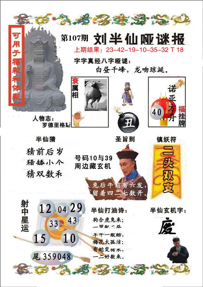 | 106期:⑤肖 | 鸡猴兔猪狗 | 牛18 |
