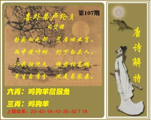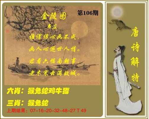| 106期:⑦肖 | 鸡猴兔猪狗龙虎 | 牛18 |